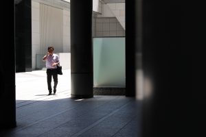 次に光と影のコントラストを、柱を使いながらあえて大胆に余白を作って被写体を目立たせるというアドバイスを元に、スナイパーのごとく柱の陰から被写体を狙い撃ち。