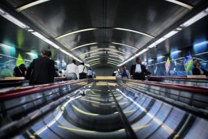 メトロでの移動中も気が抜けません。エスカレーターで移動中も、Charlesさんが「こういうところでも反射を利用して撮れるよ」とこのアングルを教えてくれました。せわしない東京の高速エスカレーター。