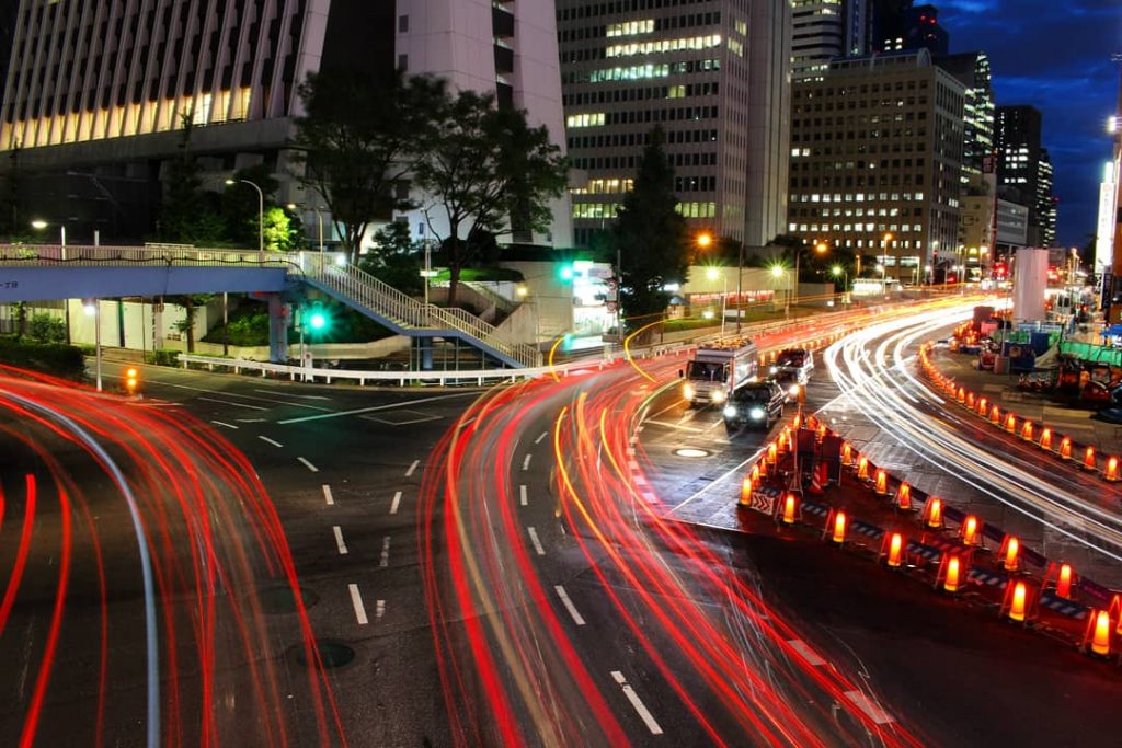 撮影方法もさることながら、構図や車の来るタイミング(片側だけではなく両車線から来るタイミングで!)や、車の走ってくる方向によってこのような光跡写真は大きく印象が変わります。毎回走る車は違うし、走る車のスピードも違うので同じ写真は二度と取れないのが難しくもあり、面白いところでもあります。