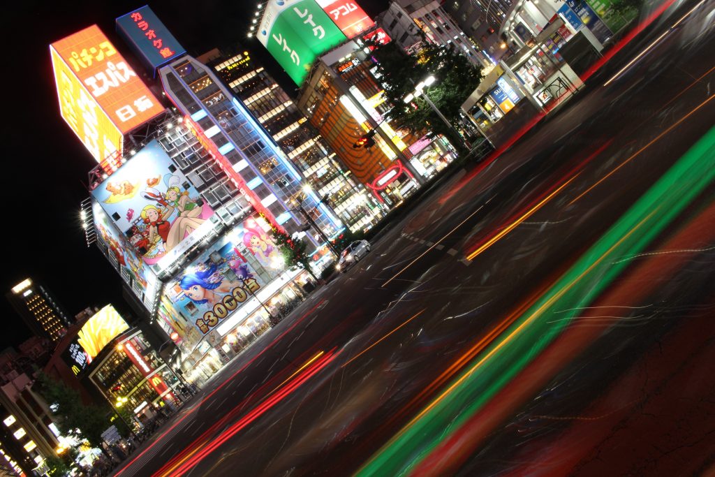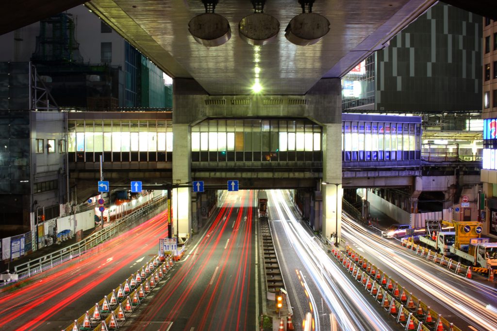 新宿のおさらいで横断歩道の信号が青の時は人の群れとネオン街を。信号が赤の時は車の光跡を。そんな感じで繰り返して撮っていたら今度は車を撮りたくなり、