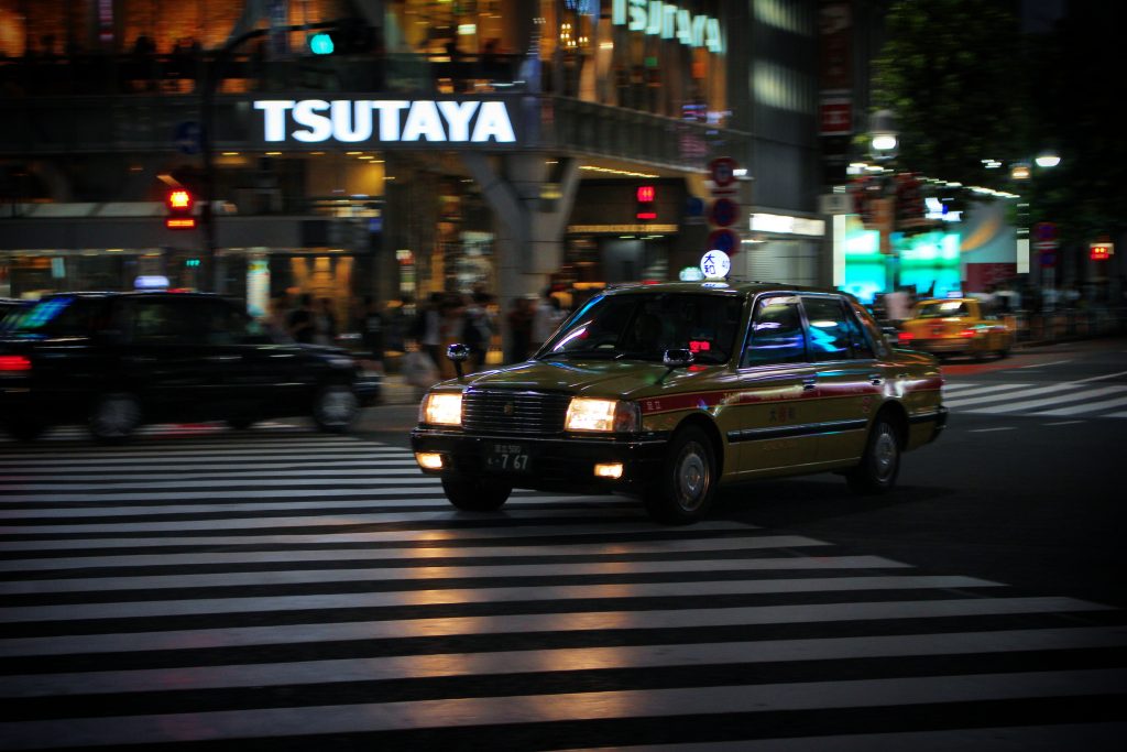 この日ひたすら話しながら撮影していたらCharlesさんも車好きなことがわかったので車の流し撮りを教えてもらいました。先ほどまではシャッタースピードを遅くして撮ってましたが、この流し撮りは被写体が動くのでシャッタースピードを早めます。(さもないとぶれてなにがなんだかわからない写真に・・・。)そして被写体となるべく同じスピードでレンズを構えて追い、ピントを合わせます。夜の渋谷を走る東京のイエローキャブ。この夜は暴走族までいました。さすが渋谷。