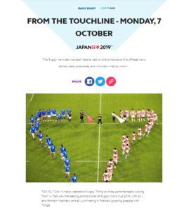 翌週に第二弾(メディア・ツアーの詳細および申し込み受付開始)のリリースを配信。この機会を最大限に活用すべく、RWCで現地スタジアムを訪れるメディア以外でも参加できるように設定し、在京の海外メディアのリストを拡充して配信。